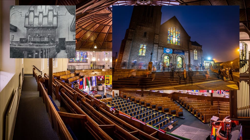 The building was designed to seat 1,000 despite the fact that the initial congregation comprised 50 families, and included a number of novel features such as its polygonal shape to provide seating close to the pulpit and steel cantilevers to reduce the need for columns thus allowing uninterrupted views. The foundation was laid in June 1898 and the building officially opened in September 1899. It was completed without the originally designed front and rear. When these were added in, respectively, the 1960s and the 1990s they were to a simplified design.