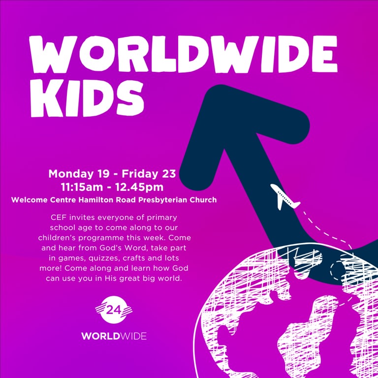 Hamilton Road Presbyterian Church - 11:15am – 12:45pmCEF invites everyone of primary school age to come along to our children’s programme this week.